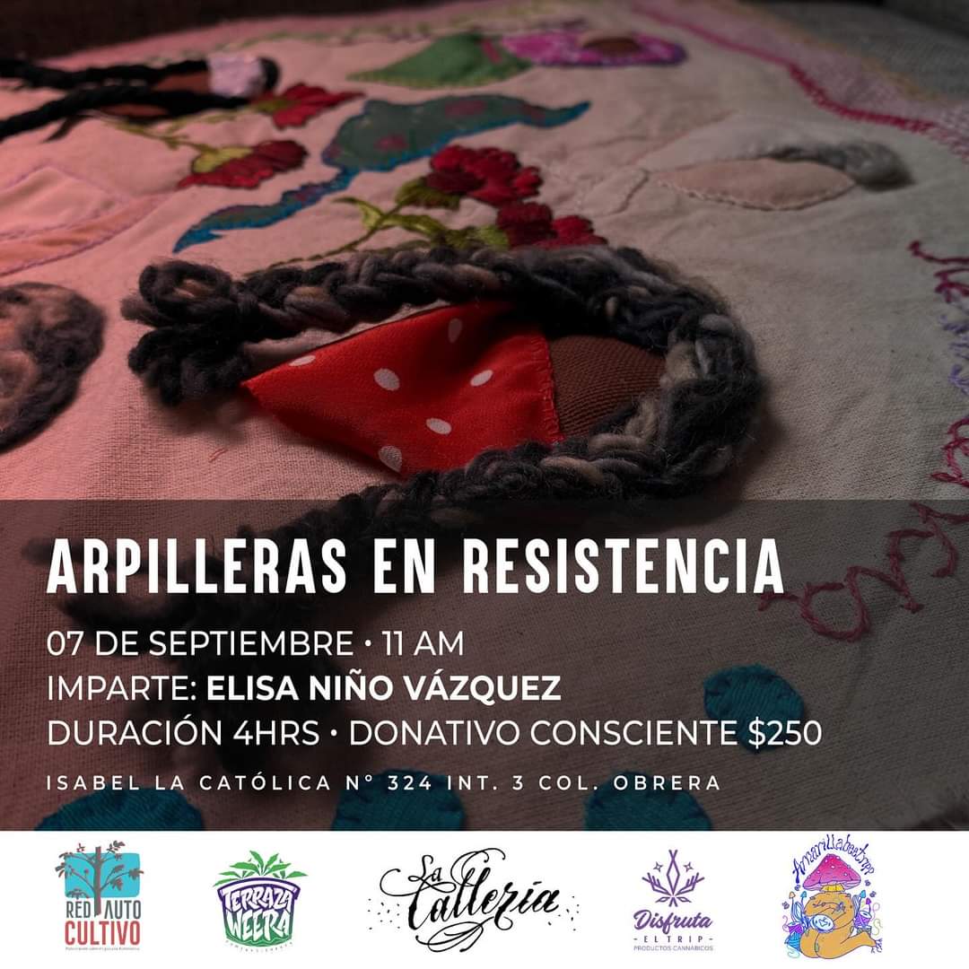 En este taller te invitamos a bordar caminos de solidaridad y resistencia.Crearemos un espacio de expresión, donde construiremos un registro textil de estas experiencias. Aprenderás la técnica de las Arpilleras, un arte político surgido en Chile con el cual se han visibilisado luchas sociales, preservado la memoria colectiva y sostenido vínculos de solidaridad.